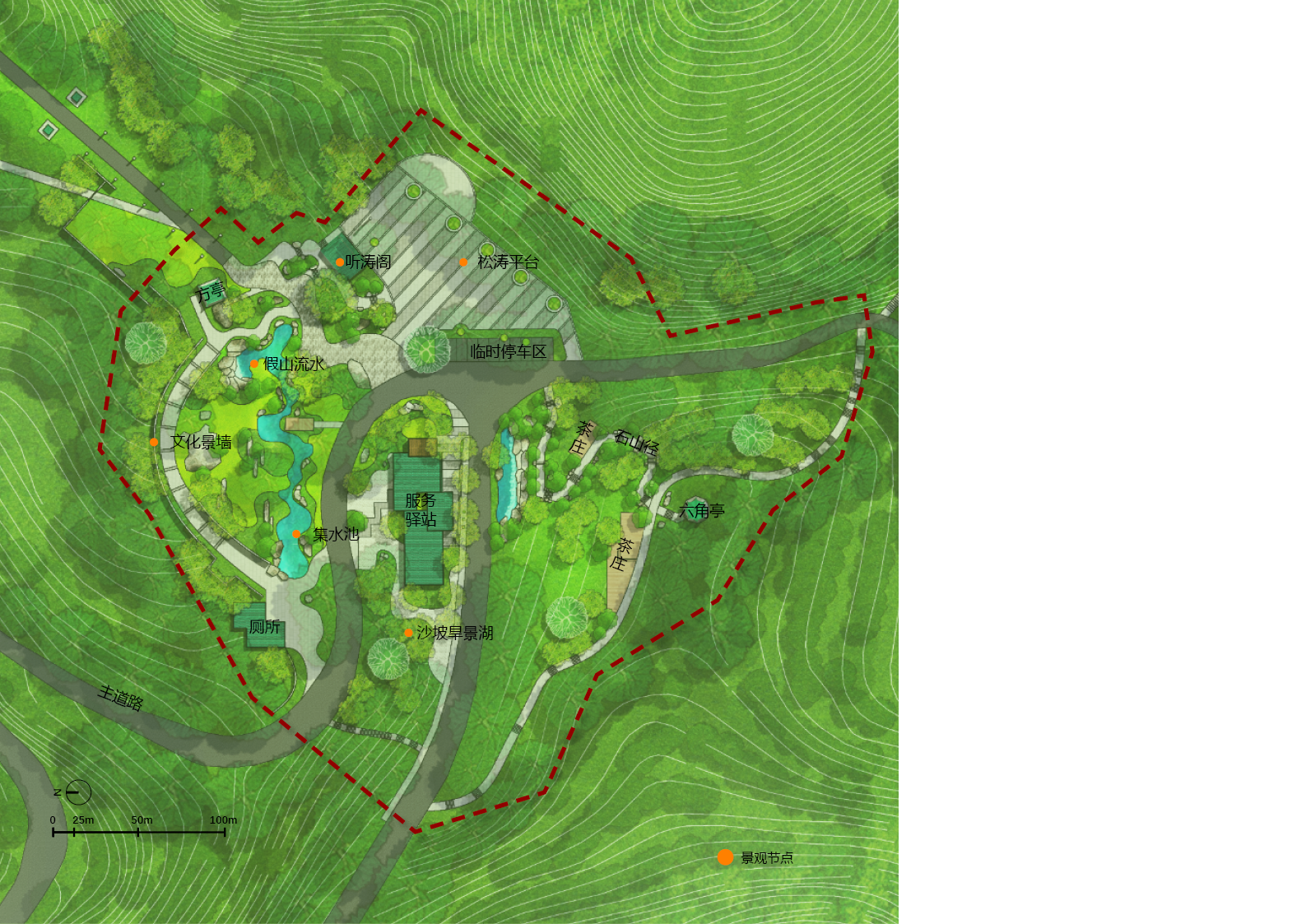 作为一把打开城市与自然之门的钥匙,它让户外有“家”,让城市可以有“自然”。带着帐篷和几把椅子,躲进山野里,享受一场与自然相拥的慢生活。设计方案通过结合手作栈道,溯溪徒步,古风景观节点等方式,构建网红拍摄打卡地和竹林自然科普环线。