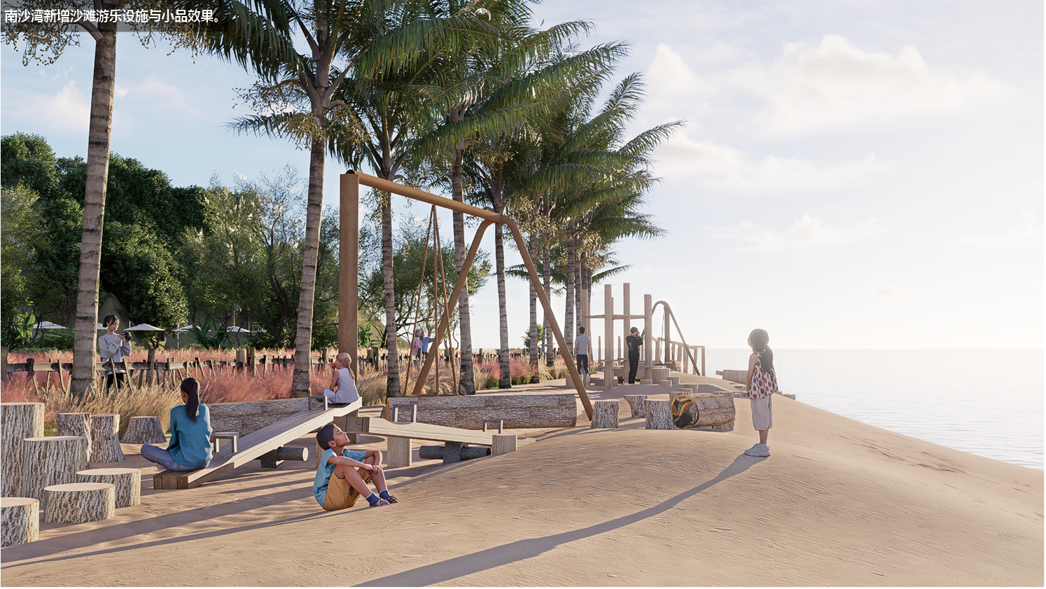 位于南沙湾海滩东南侧,以场地翻新、功能优化、生态提升为核心,解决林下平台杂乱、植被状态差、空间利用率低等问题,打造舒适的滨海休闲景观。总提升面积约 5344㎡,核心工程含原有平台 / 广场坐凳提升、新建观景道路、绿化提升、新增狼尾草种植区、绿化清杂,并增设装置小品等内容。