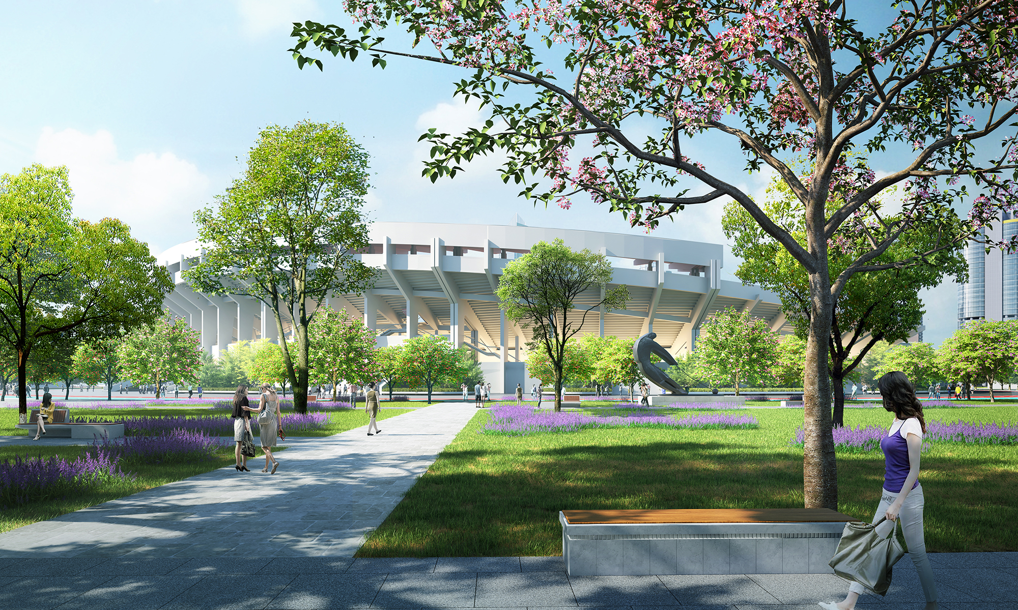 天河体育中心总用地面积约52 万平方米,处在新中轴核心位置,是广州城市发展的璀璨明珠。本项目主要为广州天河体育中心室外整体景观的提升改造,改造内容包括增加园林绿化、时花、园林小品、道路、广场、停车场、泛光照明,总改造面积489078㎡,项目总提升室外用地面积195340㎡。其中,绿化面积54236㎡,园建面积114004㎡。