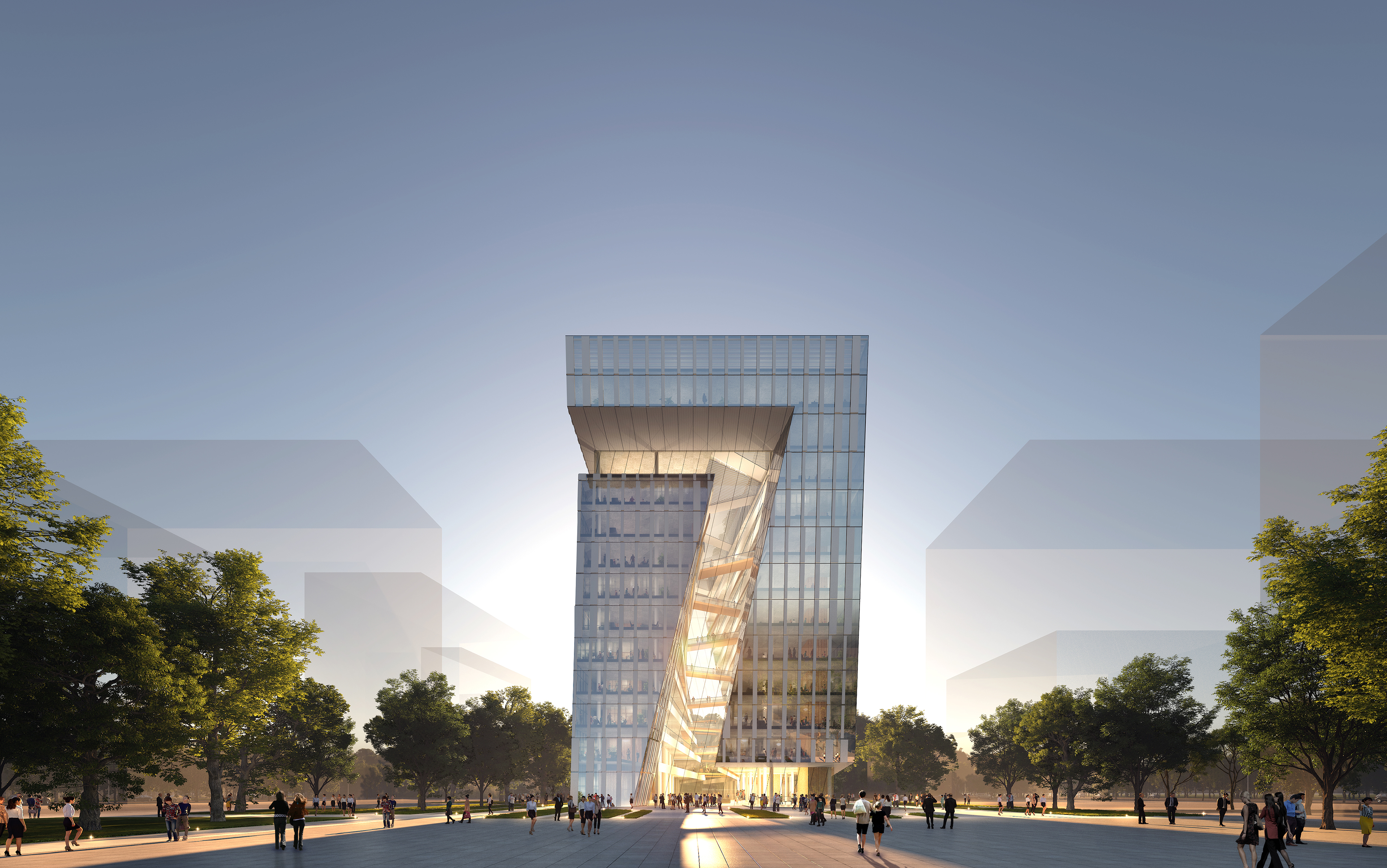 中望作为一个极富活力、管理层级扁平化的研发型企业,我们在中望总部大楼的设计中赋予了对未来建筑的愿景。将一段近四十米的通高中庭从建筑的南北相对方向切入,连接所有楼层,最终穿透屋顶,透空的“Z”型中庭赋予夺目的地标形象,再利用冷巷、呼吸幕墙与屋顶格栅等节能技术感知调节,将建筑作为一个“可呼吸”的整体。最终被塑造出来的建筑拥有高品质的空间形象,绿色生态的办公环境,开放共享的社交空间,将吸引全球的瞩目。
