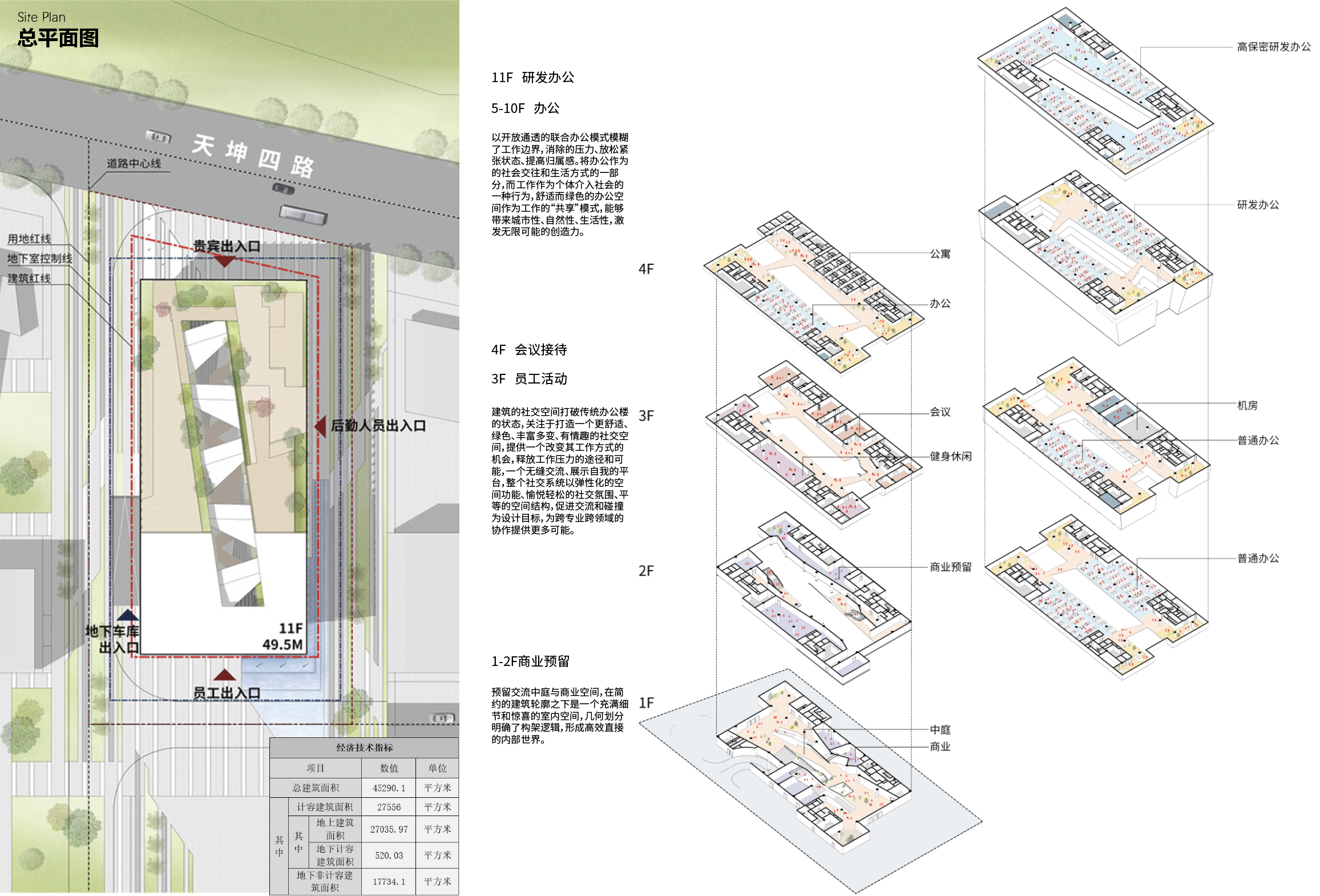建筑位于广州天河智谷片区,城市活力度有口皆碑,交通可达性高,周边整体流线由西向东,地域功能类型组成较为单一,配套设施完善。